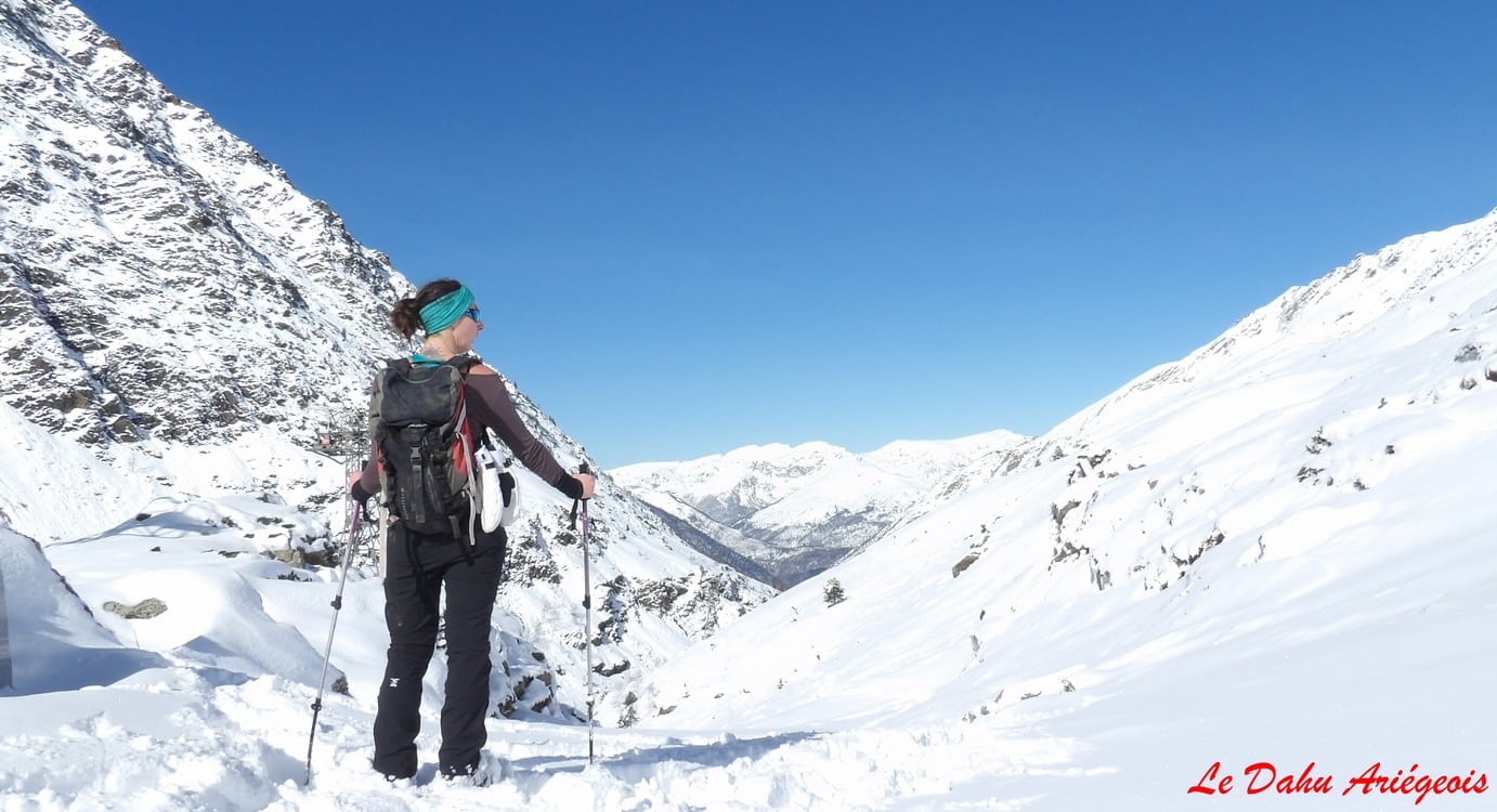 Voici une belle randonnée raquettes à neige, dans un site exceptionnel en hiver. Un parcours plus technique (niveau 4/6), sur le massif du Montcalm, vous mènera jusqu’à l’étang Sourd, souvent entièrement glacé en hiver. Vous progresserez dans une ambiance de hauts sommets, au cœur de paysages uniques en hiver. Le massif du Montcalm est le berceau des 3000m avec un panorama unique sur le pic rouge de Bassiès. Pour plus de sécurité, cette sortie raquettes à neige est encadrée par un accompagnateur en montagne. Les kit ARVA seront mis à votre disposition.